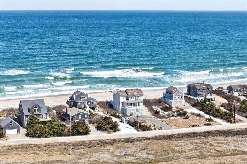 Perched directly on the dunes of East Sandwich, this striking residence enjoys a sandy beach on Cape Cod Bay as its backyard. Offered fully furnished, the architectural heart of the home is a double-height great room with a wall of glass framing panoramic water views, wide plank oak floors, and a Town & Country gas fireplace. The open-concept layout flows into a gourmet kitchen featuring custom black walnut cabinetry, natural quartz countertops, and professional-grade appliances. The first-floor primary suite provides a spa-like retreat with a hammered nickel soaking tub and Carrara marble, while three additional upstairs bedrooms also feature...read more