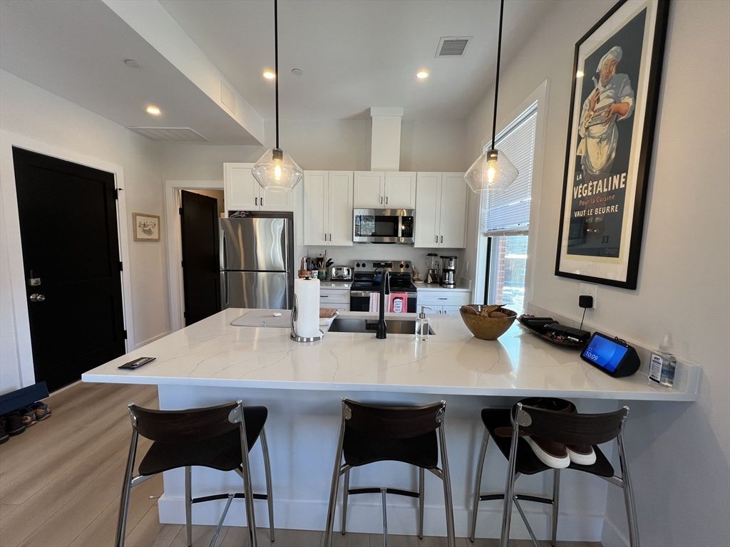Welcome to 198 Albion Flats! This professionally managed building showcases high-end design and meticulous attention to detail. Enjoy roughly 10-foot ceilings, neutral paint, and LVT flooring with sound insulation for quiet, modern living. Kitchens boast white shaker cabinets, quartz countertops, black hardware, and vented microwaves, while bathrooms include glass shower enclosures, porcelain tiles, and comfortable penny tile floors. Designed for efficiency, each unit has a high-efficiency heat pump, individual electric hot water tank, LED recessed lighting, and an ERV air circulation system. Included 1 parking space in a well-lit, landscaped...read more
