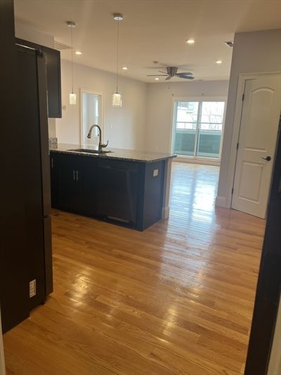 The modern apartment complex opened in 2019. This LARGE unit has tons of natural light, a modern kitchen with granite countertops and stainless steel appliances, oversized bedrooms with a master walk-in closet, a separate linen closet, a master bath with a tiled walk-in shower, and gleaming hardwood floors throughout, including a unit washer and dryer. The complex also has heated, secure garage parking and an elevator.