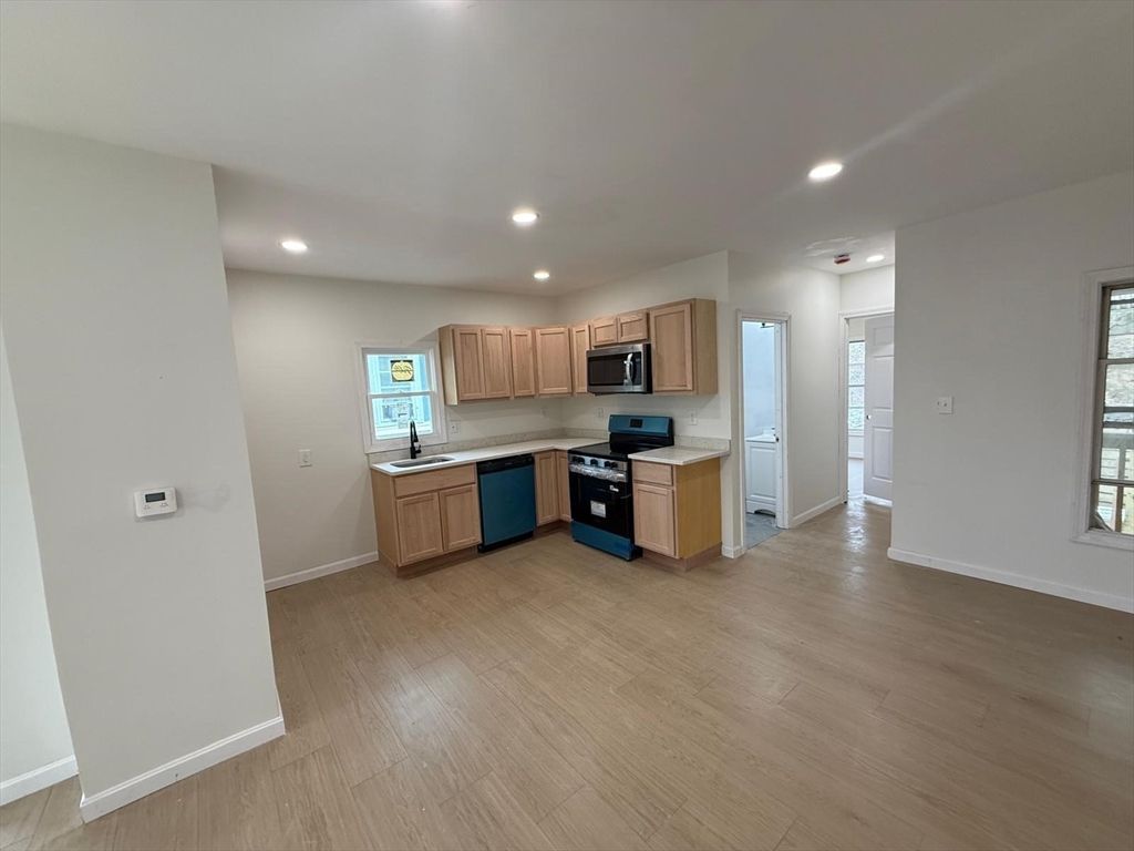 Bright and updated 2-bedroom, 1-bath second-floor unit featuring an open-concept layout and modern finishes throughout. The kitchen offers updated cabinetry, countertops, and new appliances, seamlessly flowing into a spacious living and dining area filled with natural light.Both bedrooms are well-sized with ample closet space, and the unit includes the convenience of in-unit laundry. Fresh flooring, recessed lighting, and neutral tones make this home move-in ready.Conveniently located near local shops, restaurants, and public transportation.